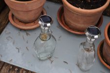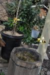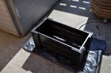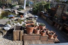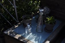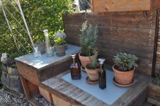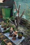 Solange das milde Wetter anhält, werkeln wir weiter im Garten. Das Kisterl beim Flieder haben wir zur Kräutertreppe verbracht und das Oswegokraut rein gepflanzt. Ein neues, breiteres Kistel hat einen dunklen Holzanstrich bekommen und das kleiner Kisterl ersetzt. [Bild Nr. 5/01-5/04]
