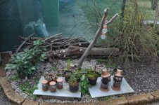 Um das Hochbeet wieder etwas aufzufüllen haben wir Erde aus dem Komposter  gesiebt und mit Kokoserde vermischt. [Bild. Nr. 1/02] Umdekoriert, vorhandene und neue Deko angebracht [Bild. Nr. 1/02-1/09] und noch ein wenig umgepflanzt. [Bild. Nr. 1/10-1/11]