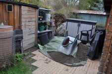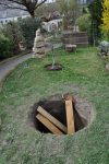 Für den angekündigten, neuen Baum haben wir das Loch ausgehoben und eine Kletterhilfe eingesetzt, sollte ein kleiner Gartenbewohner hineinfallen.  [Bild Nr. 5/15-5/17]