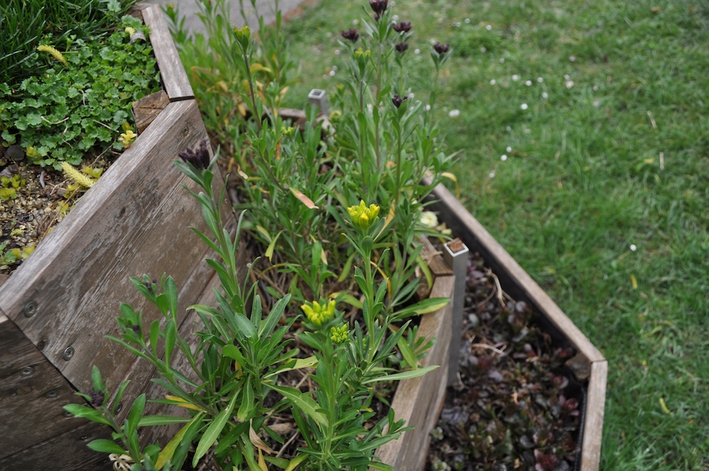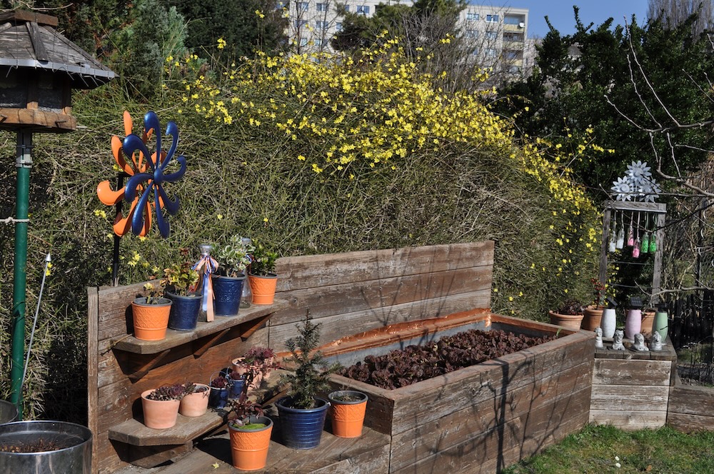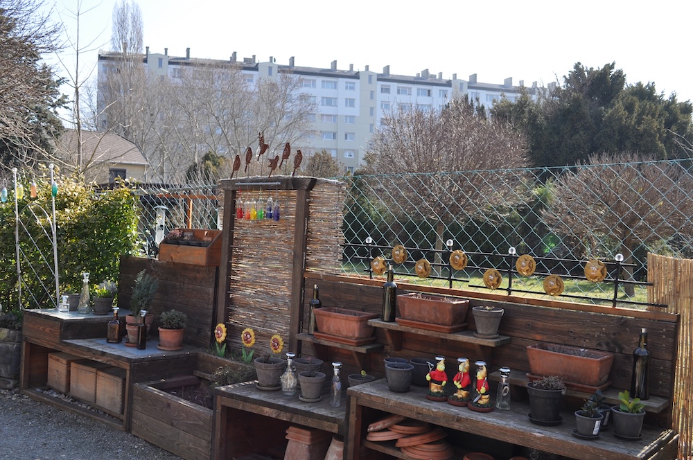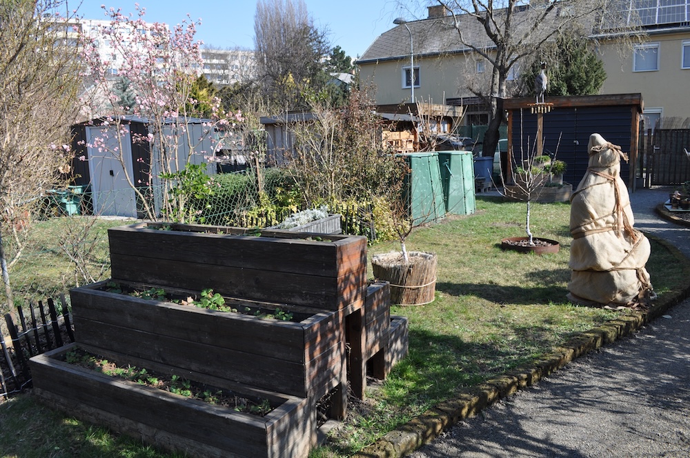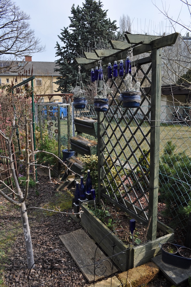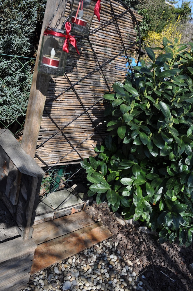 Solange das milde Wetter anhält, werkeln wir weiter im Garten. Das Kisterl beim Flieder haben wir zur Kräutertreppe verbracht und das Oswegokraut rein gepflanzt. Ein neues, breiteres Kistel hat einen dunklen Holzanstrich bekommen und das kleiner Kisterl ersetzt. [Bild Nr. 5/01-5/04]