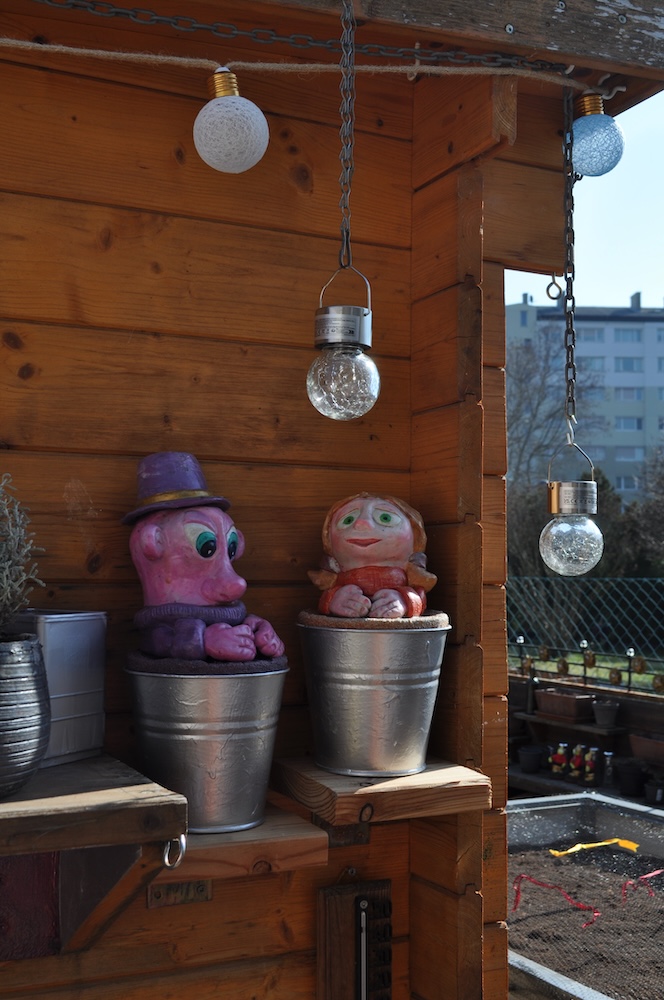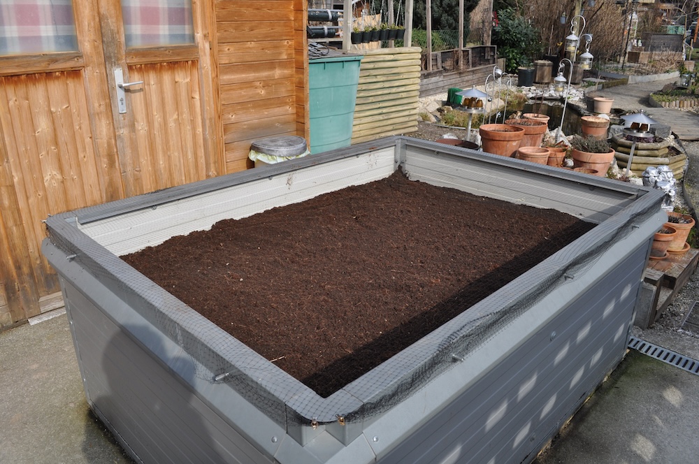 Um das Hochbeet wieder etwas aufzufüllen haben wir Erde aus dem Komposter  gesiebt und mit Kokoserde vermischt. [Bild. Nr. 1/02] Umdekoriert, vorhandene und neue Deko angebracht [Bild. Nr. 1/02-1/09] und noch ein wenig umgepflanzt. [Bild. Nr. 1/10-1/11]