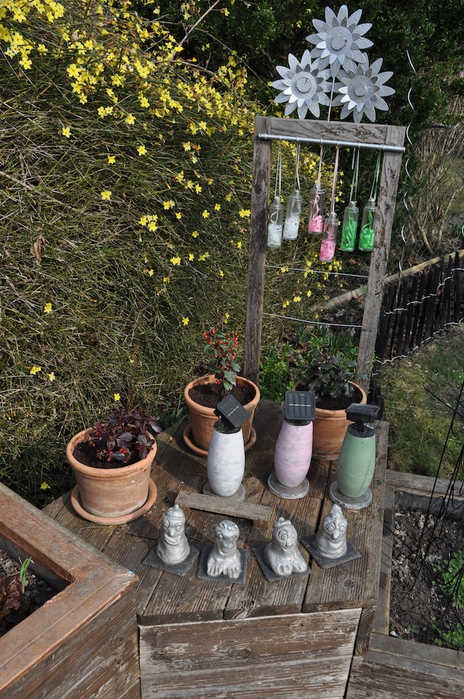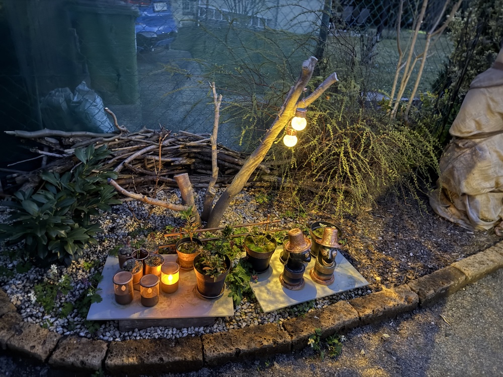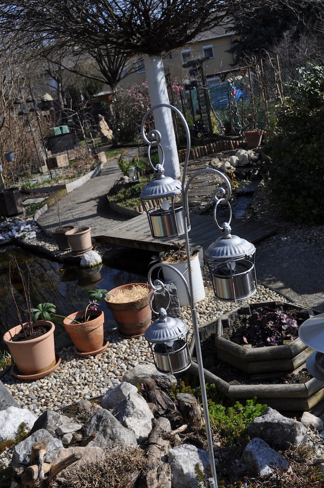 Alles was an Arbeiten machbar war, haben wir ja längst erledigt – es kann durchaus noch einmal Frost geben, etwas auszupflanzen wäre viel zu früh.  Aber  die defekten Lichter können gefahrlos ausgetauscht und neue hinzugefügt werden.  [Bild Nr. 2/09-2/19]