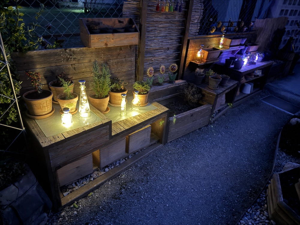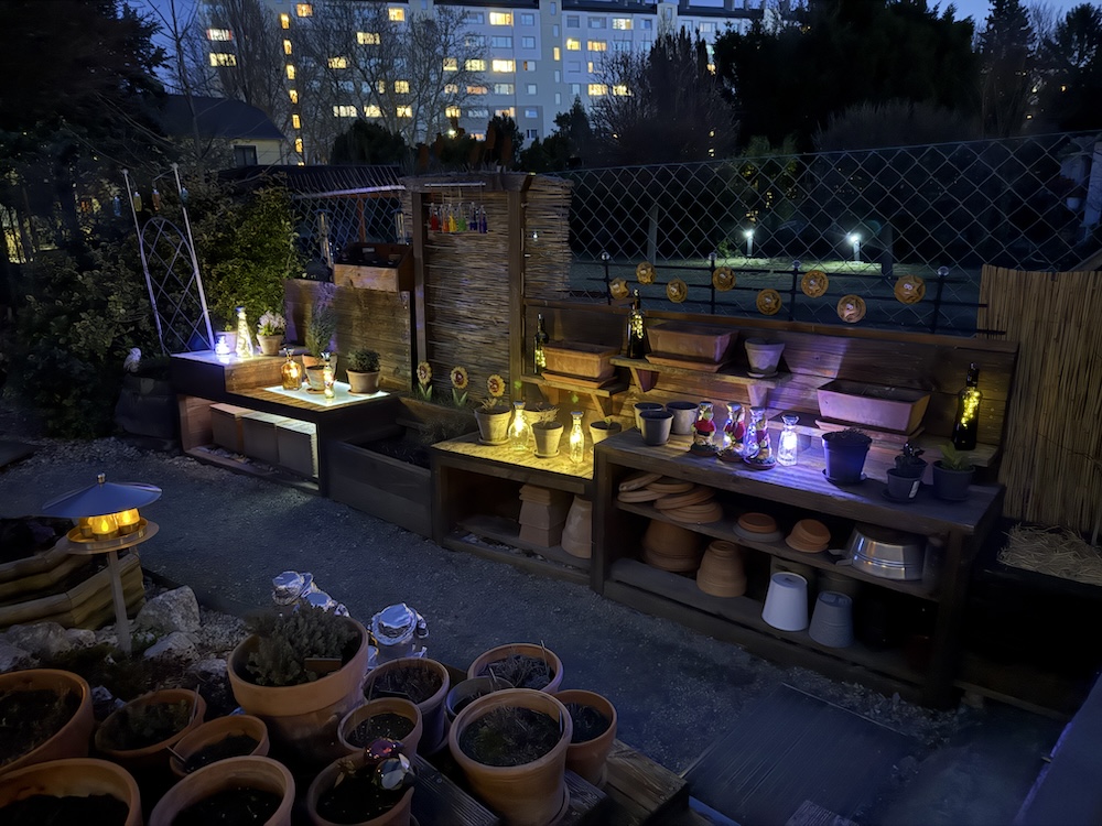 Die neuen Lichter mitsamt den bestehenden  erhellen den Garten.  [Bild Nr. 6/01-6/18]