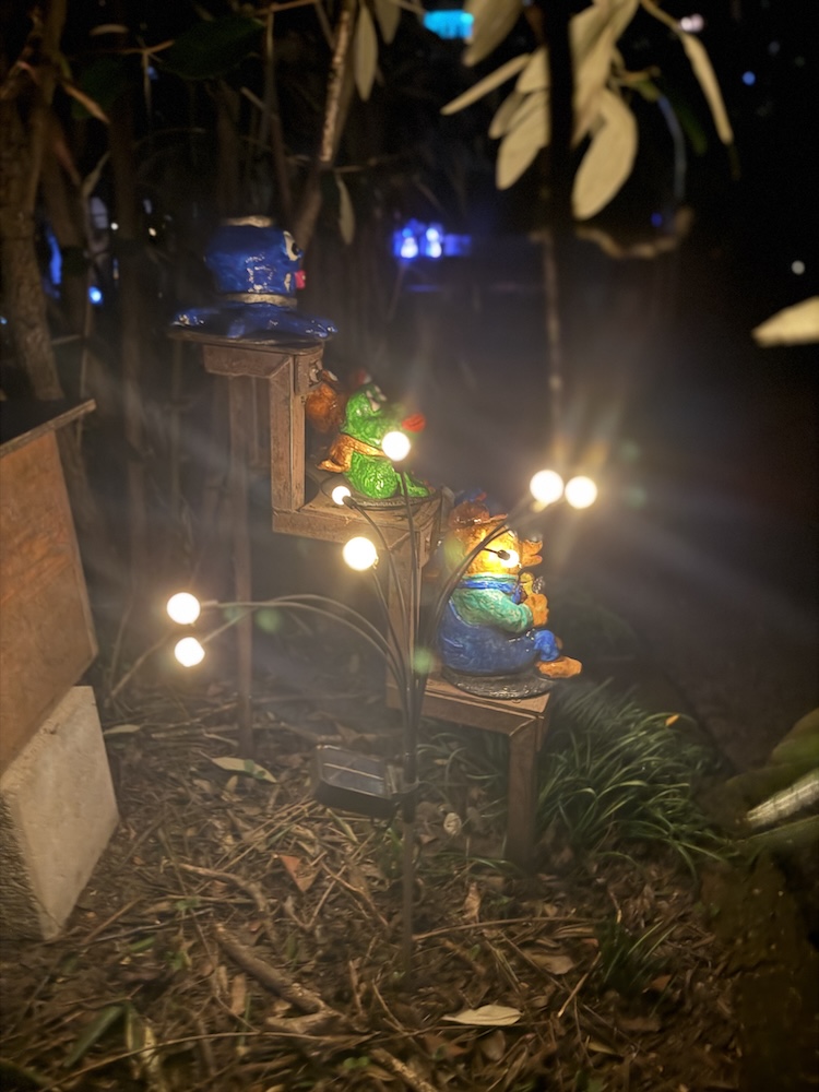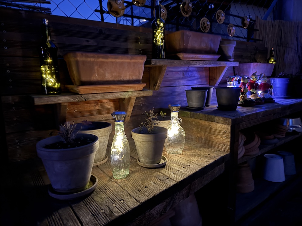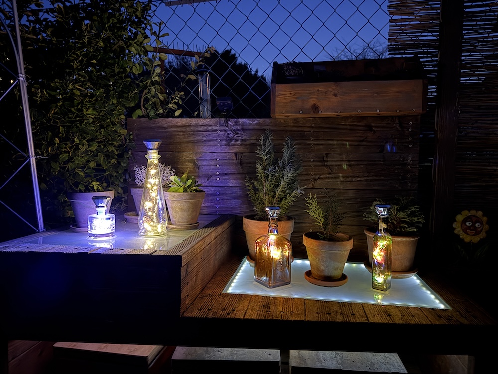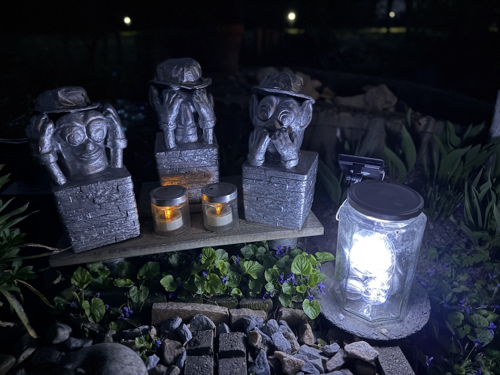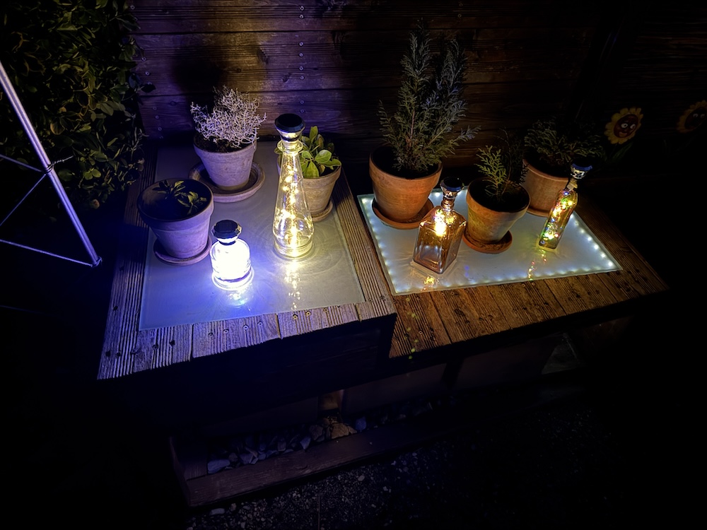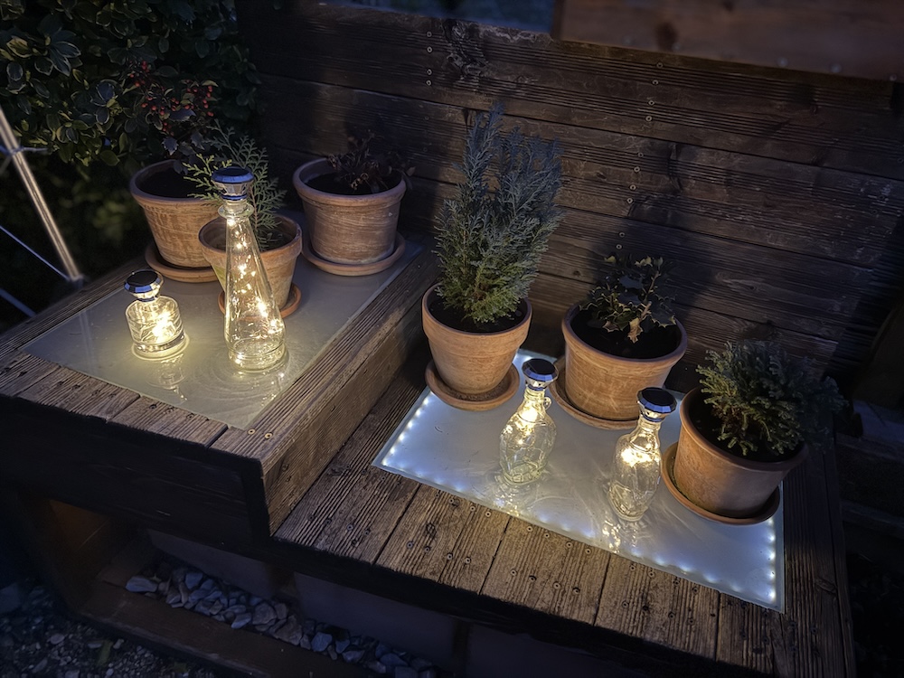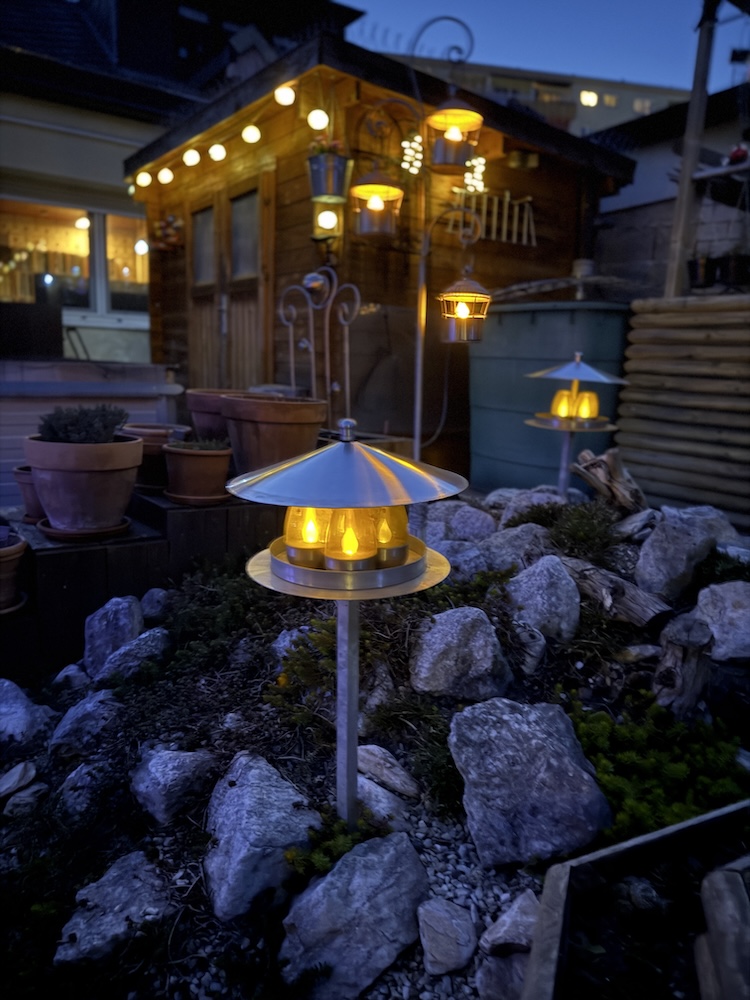 Wie alle Lichter im Garten sind auch die neuen LED Solar betrieben, um einerseits die tierischen Bewohner, im besonderen  die Insekten nicht zu stören und zudem wird Strom gespart.