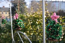 Die Lichter werden mit kleinen Solarpanele betrieben und halten selbst bei wenig Sonnenlicht relativ lange. Einzig die Weihnachts-Girlande am Garten-Gerätehaus wird mit wiederaufladbaren Batterien ausgestattet.