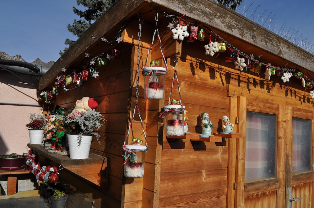 Die Lichter werden mit kleinen Solarpanele betrieben und halten selbst bei wenig Sonnenlicht relativ lange. Einzig die Weihnachts-Girlande am Garten-Gerätehaus wird mit wiederaufladbaren Batterien ausgestattet.