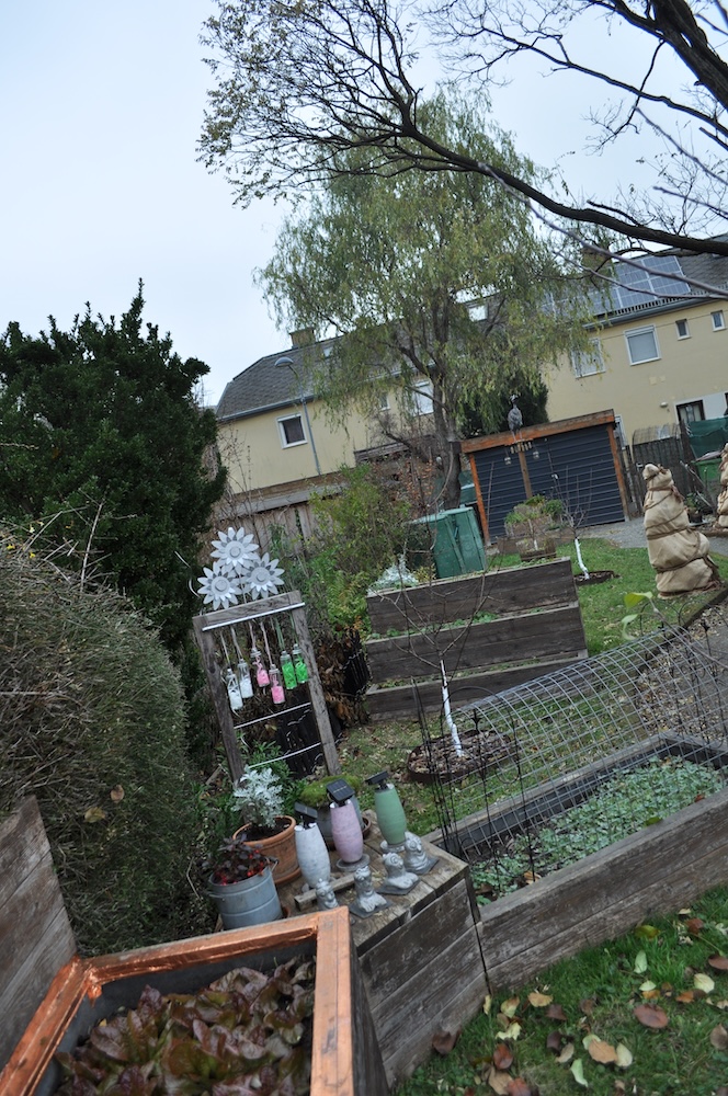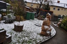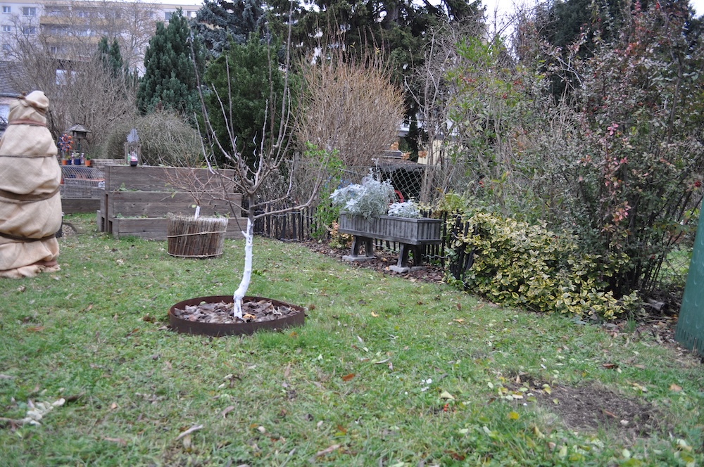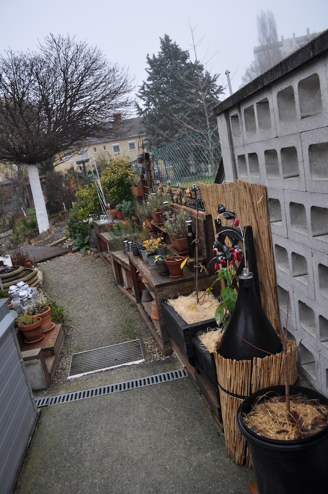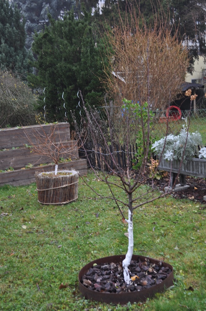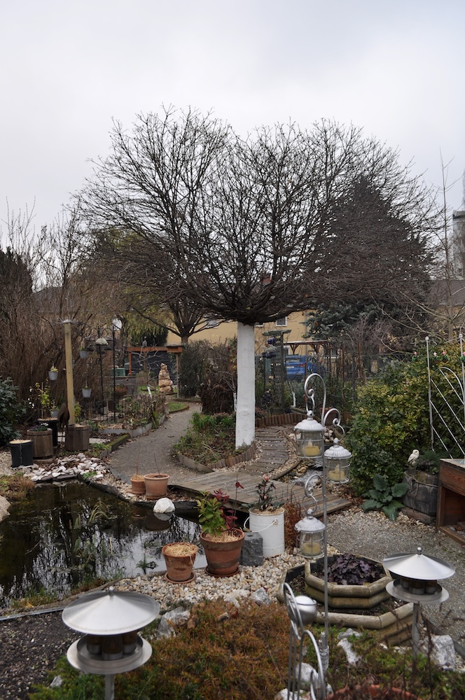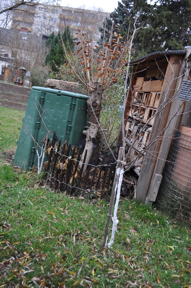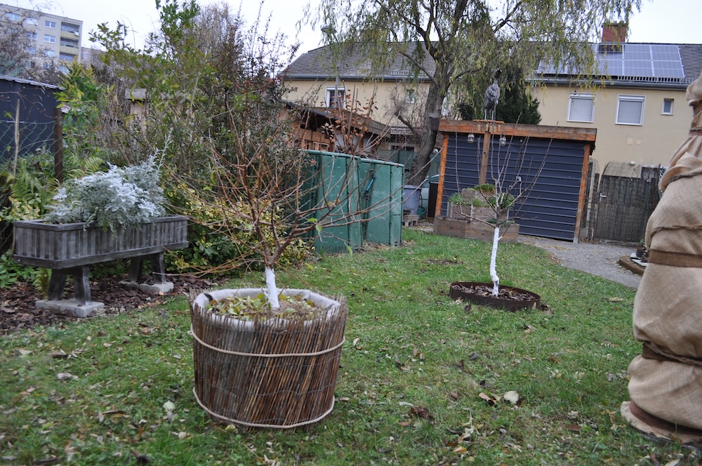 Den kleinen Marillenbaum haben wir im Bottich umgestellt, der Boden wäre weich genug um das Bäumchen direkt in die Erde zu pflanzen, das wollen wir dann doch eher im Frühjahr machen, gemeinsam mit dem neuen Baum der kommen soll. [Bild Nr. 1/19-1/21]