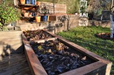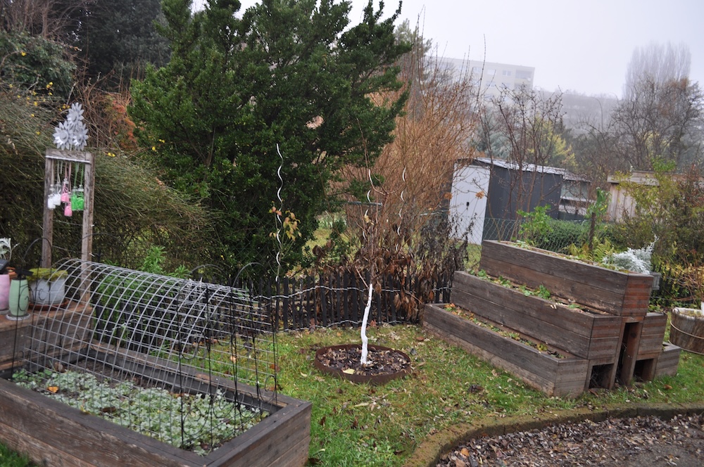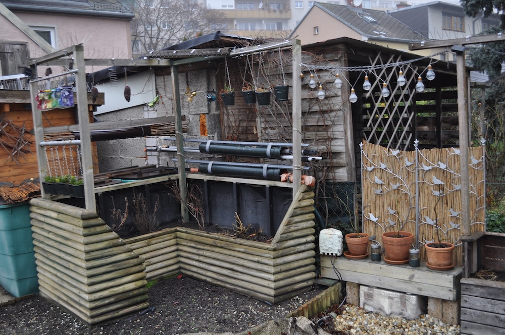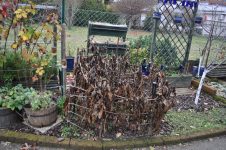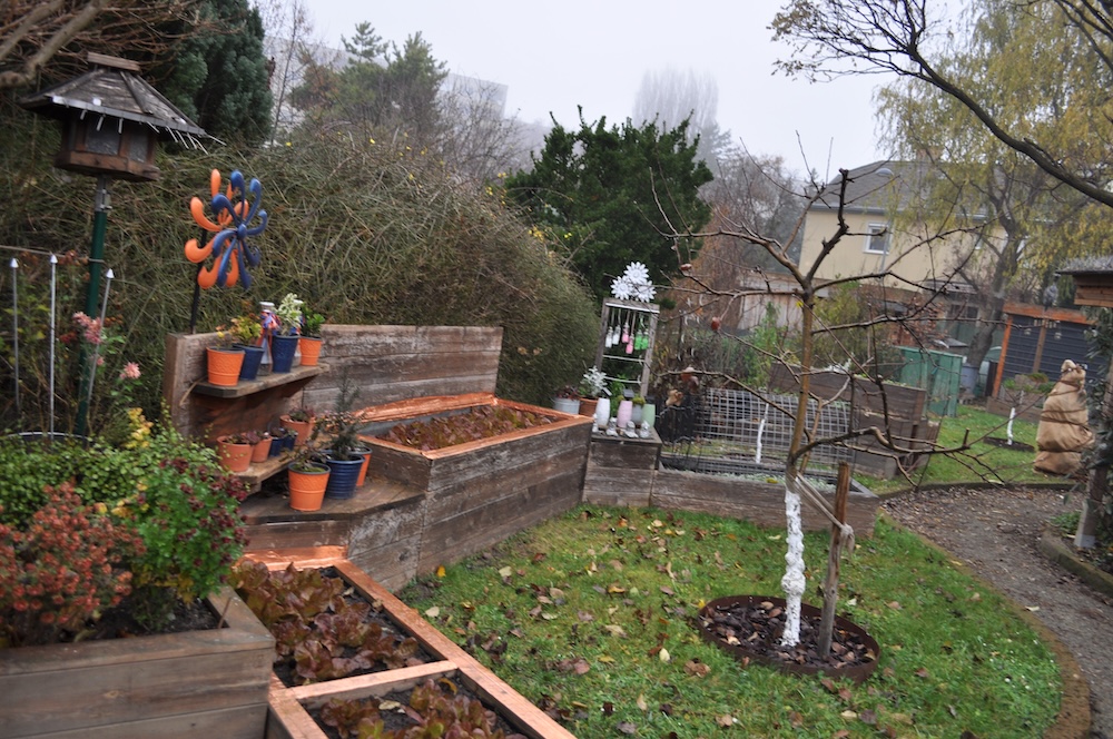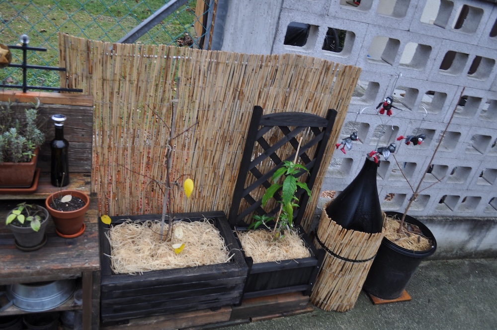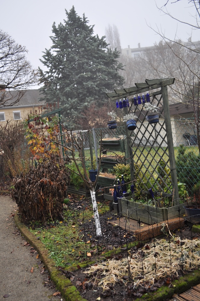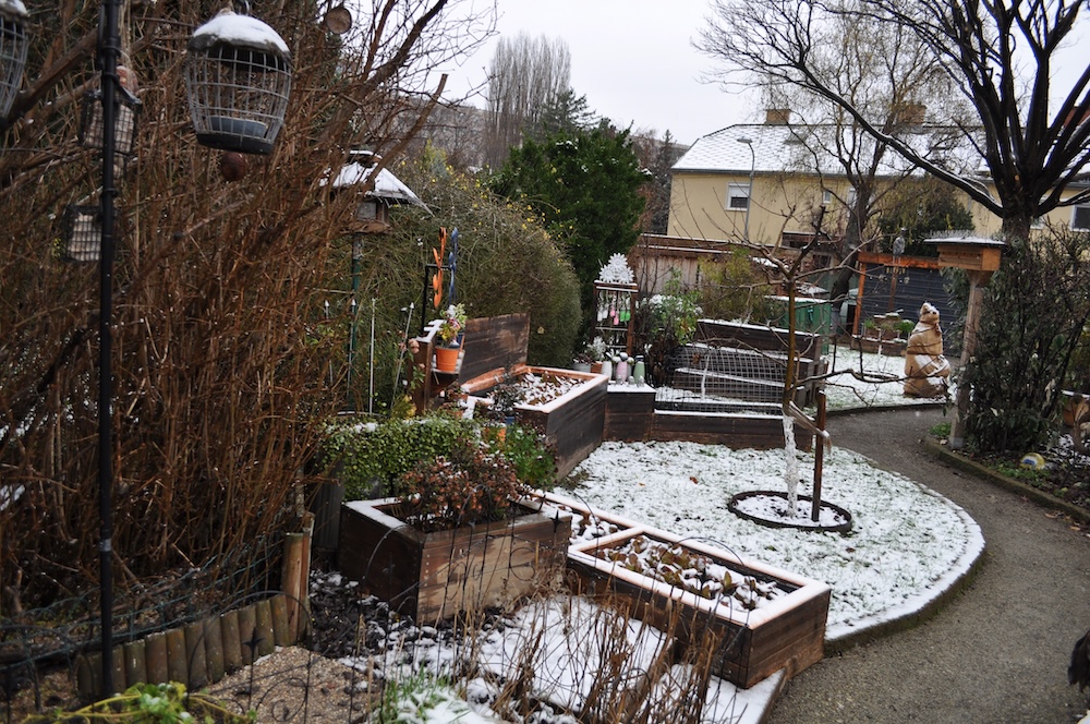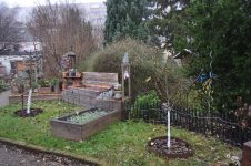 Den kleinen Marillenbaum haben wir im Bottich umgestellt, der Boden wäre weich genug um das Bäumchen direkt in die Erde zu pflanzen, das wollen wir dann doch eher im Frühjahr machen, gemeinsam mit dem neuen Baum der kommen soll. [Bild Nr. 1/19-1/21]