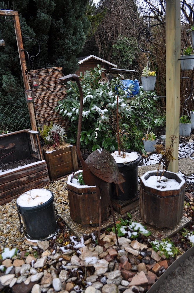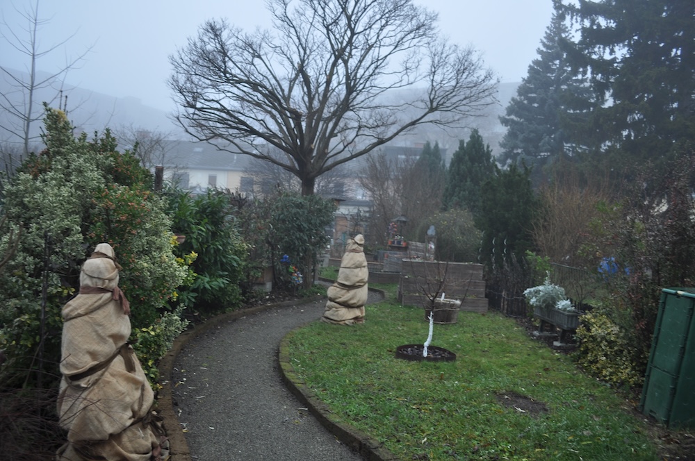 Der Frost hat sich verabschiedet, der Schnee ist geschmolzen – geblieben ist trübes und regnerisches Wetter mit Plus Graden. [Bild Nr. 1/01-1/15] Bis auf den Wintersalat und der Schneerose ist nun alles im Winterschlaf. [Bild Nr. 1/16-1/18]