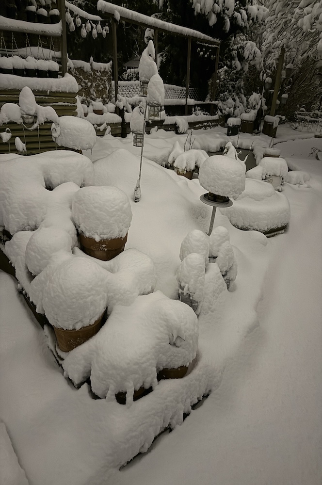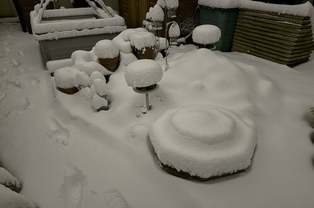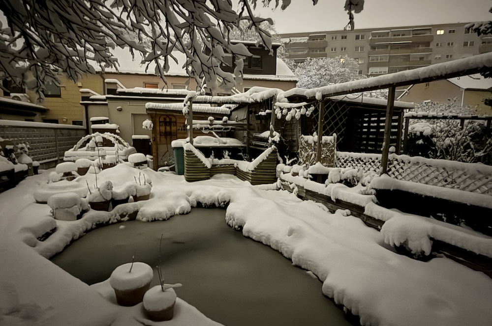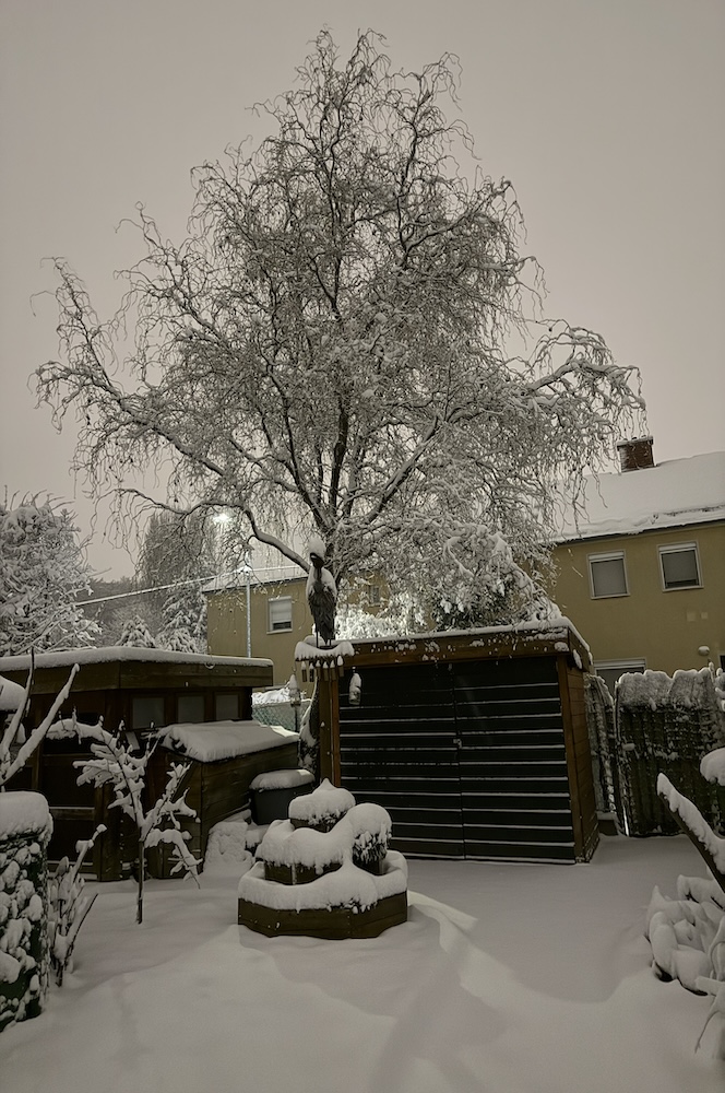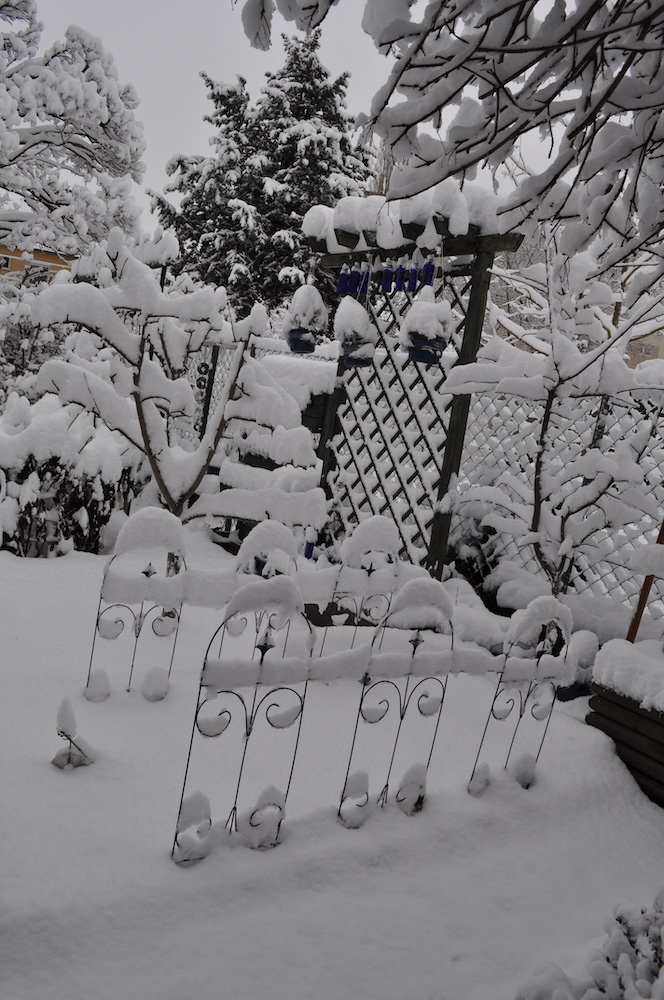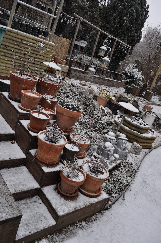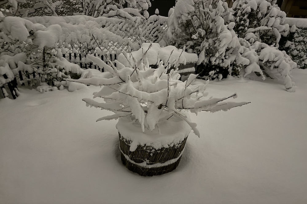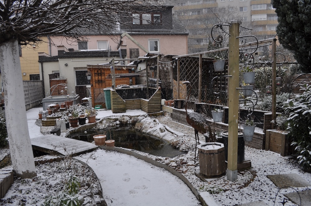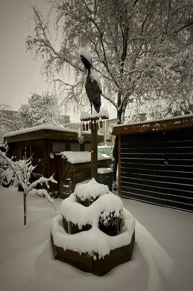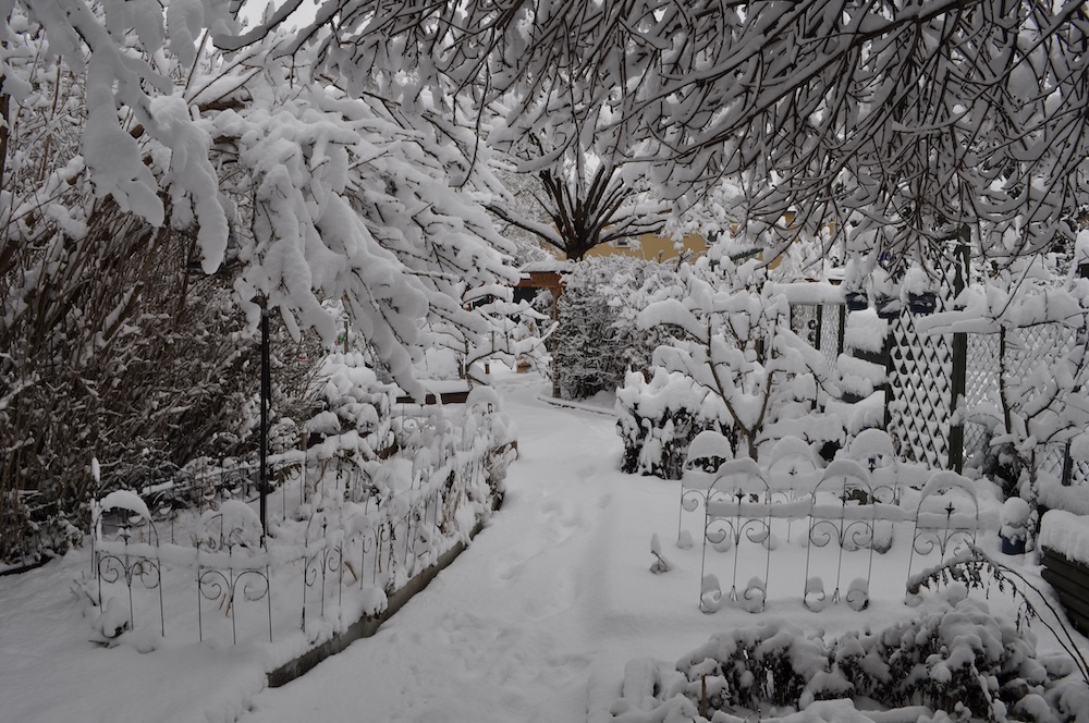 Die ganze Nacht lang hat es durch geschneit [Bild Nr. 5/01-5/18], erst am frühen Vormittag hat der Schneefall geendet und den Garten unter einer dicken Schneedecke vergraben. [Bild Nr. 5/19-5/30]