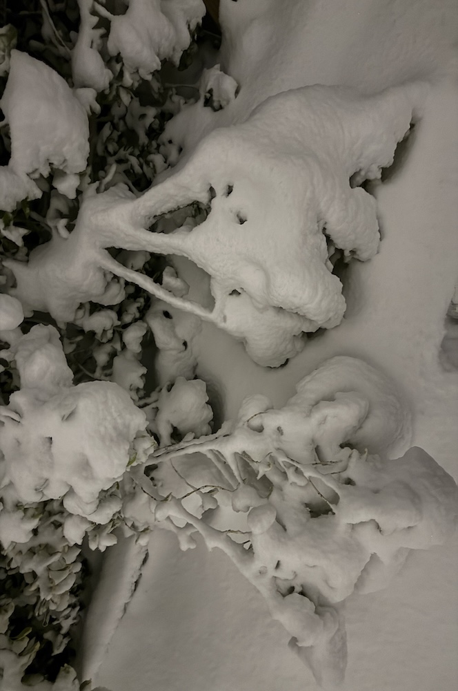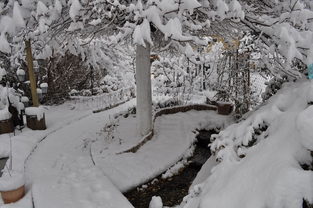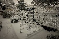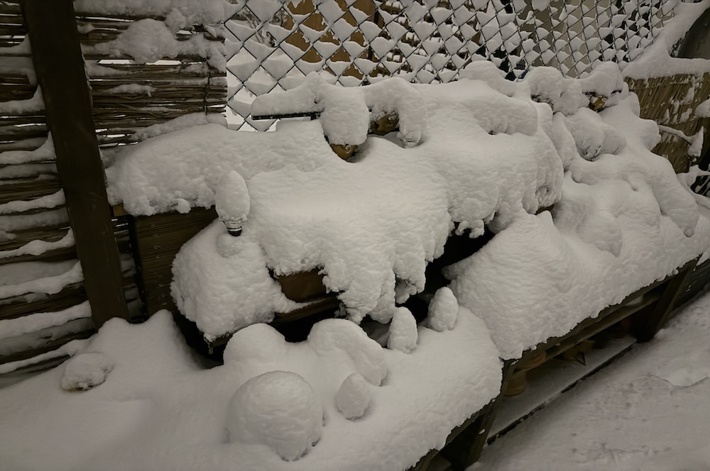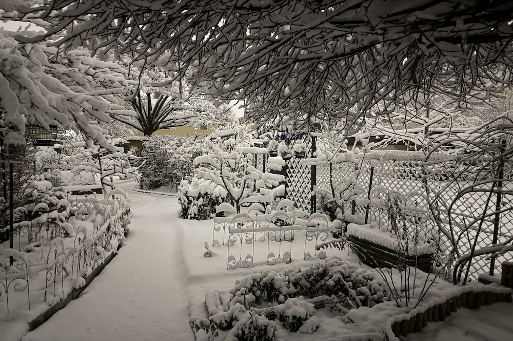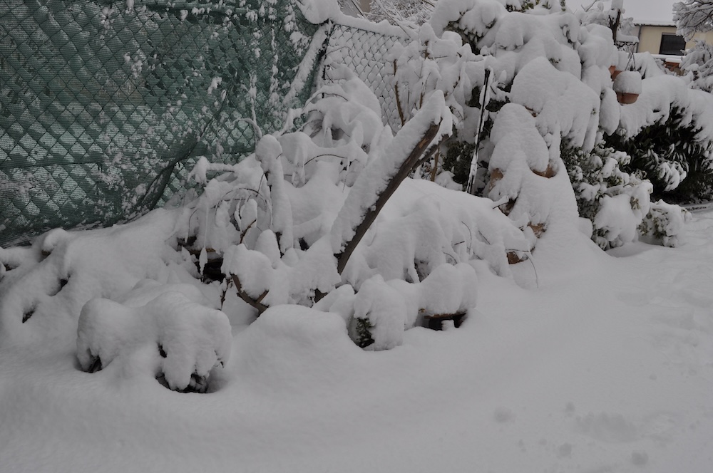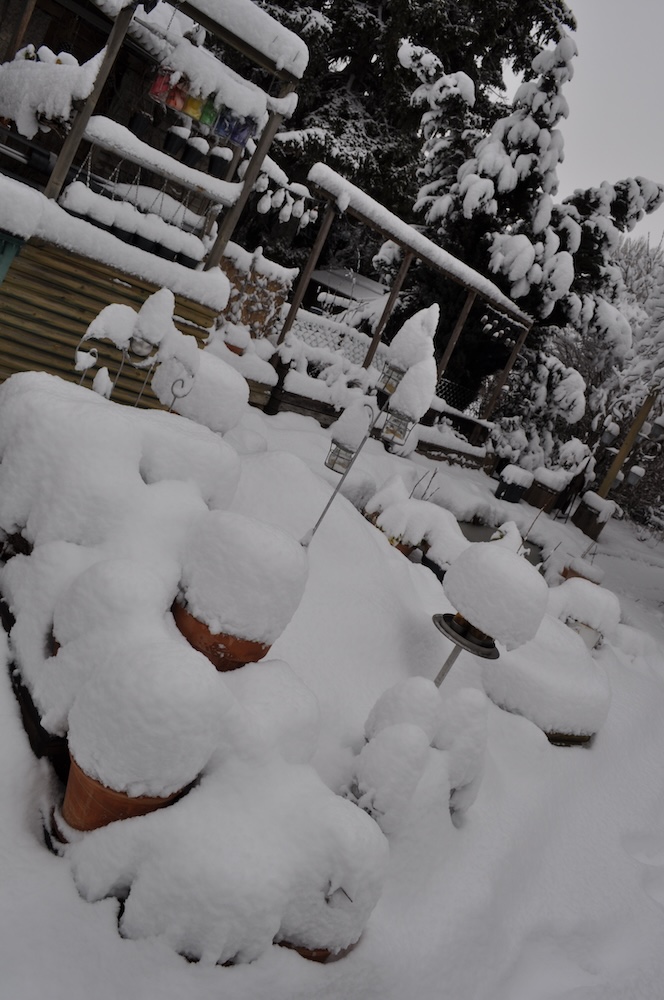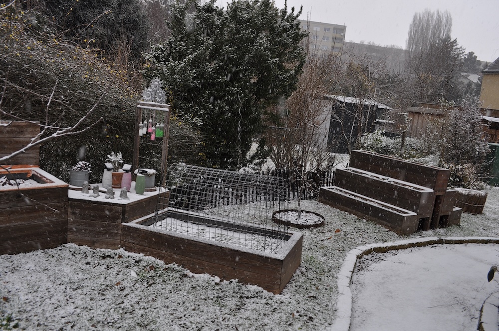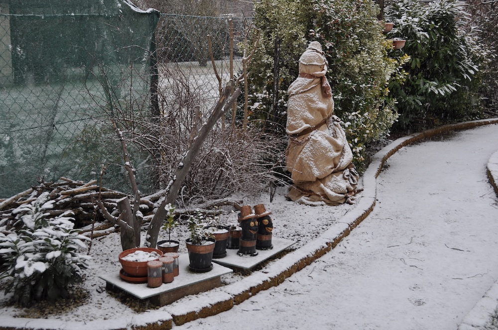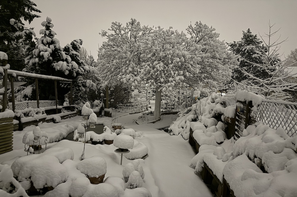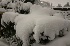 Die ganze Nacht lang hat es durch geschneit [Bild Nr. 5/01-5/18], erst am frühen Vormittag hat der Schneefall geendet und den Garten unter einer dicken Schneedecke vergraben. [Bild Nr. 5/19-5/30]