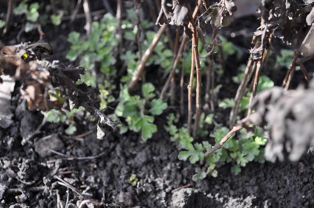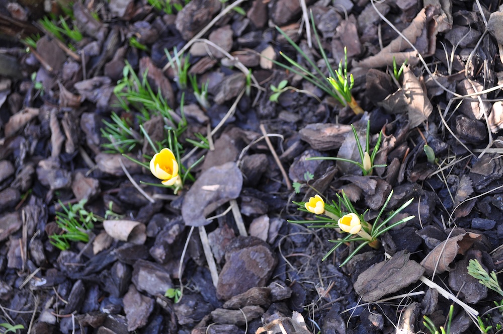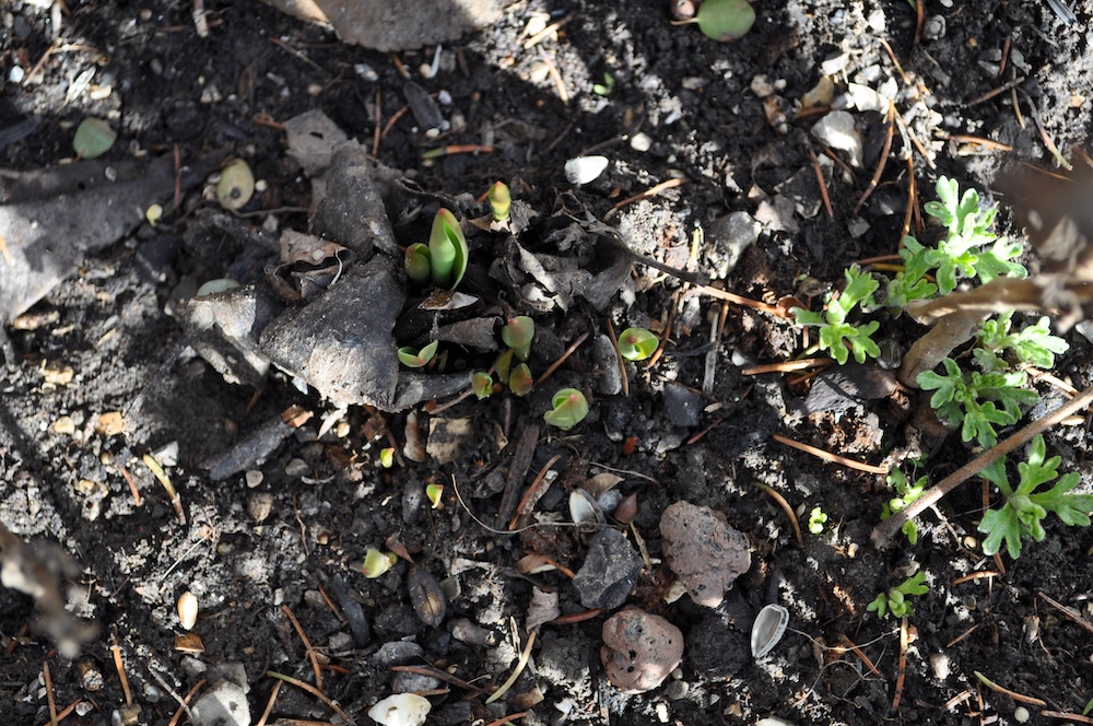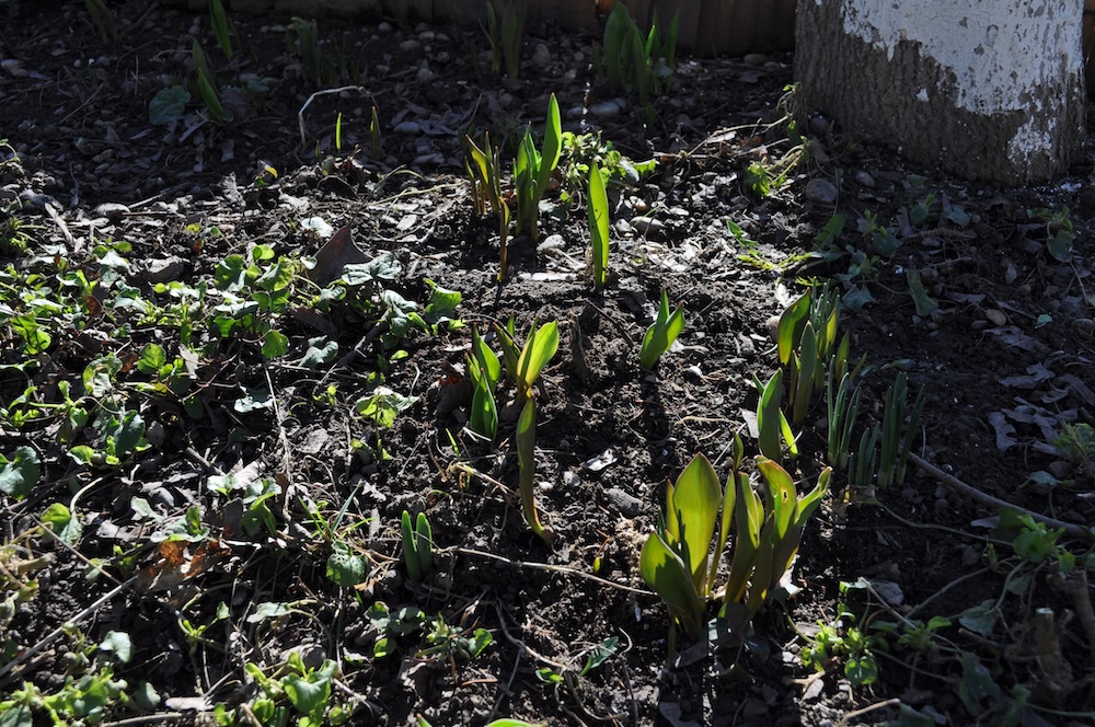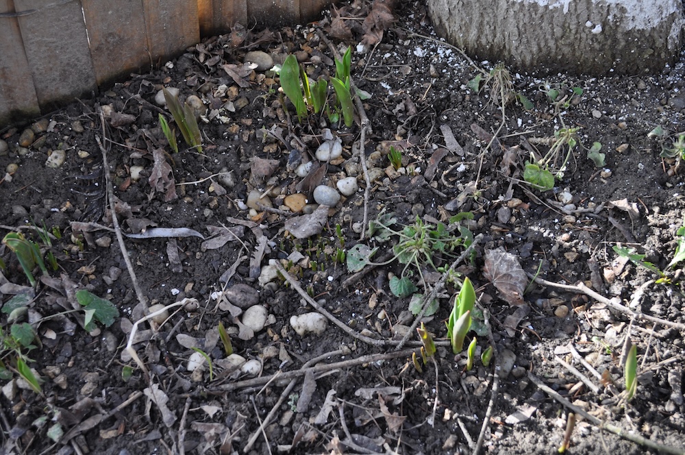 Nachdem die dicke Schneedecke geschmolzen ist, kommen überall im Garten Triebe zum Vorschein. [Bild Nr. 6/09-6/15]