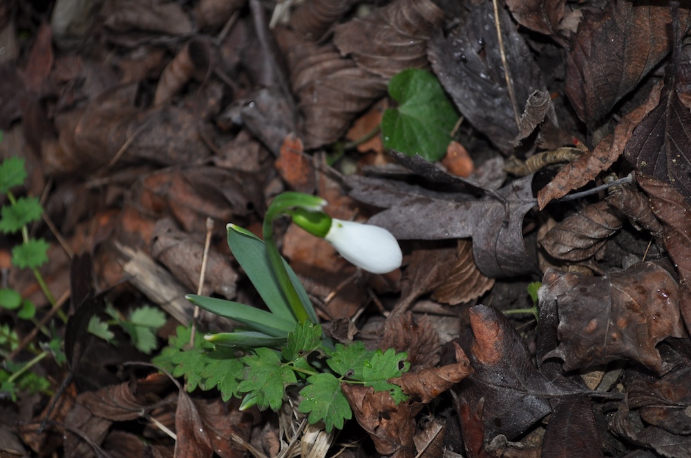 Trotz fehlender Sonne zeigen sich dennoch ein paar Knospen und die ersten Schneeglöckchen beginnen zu sprießen. [Bild Nr. 1/11-01/15]