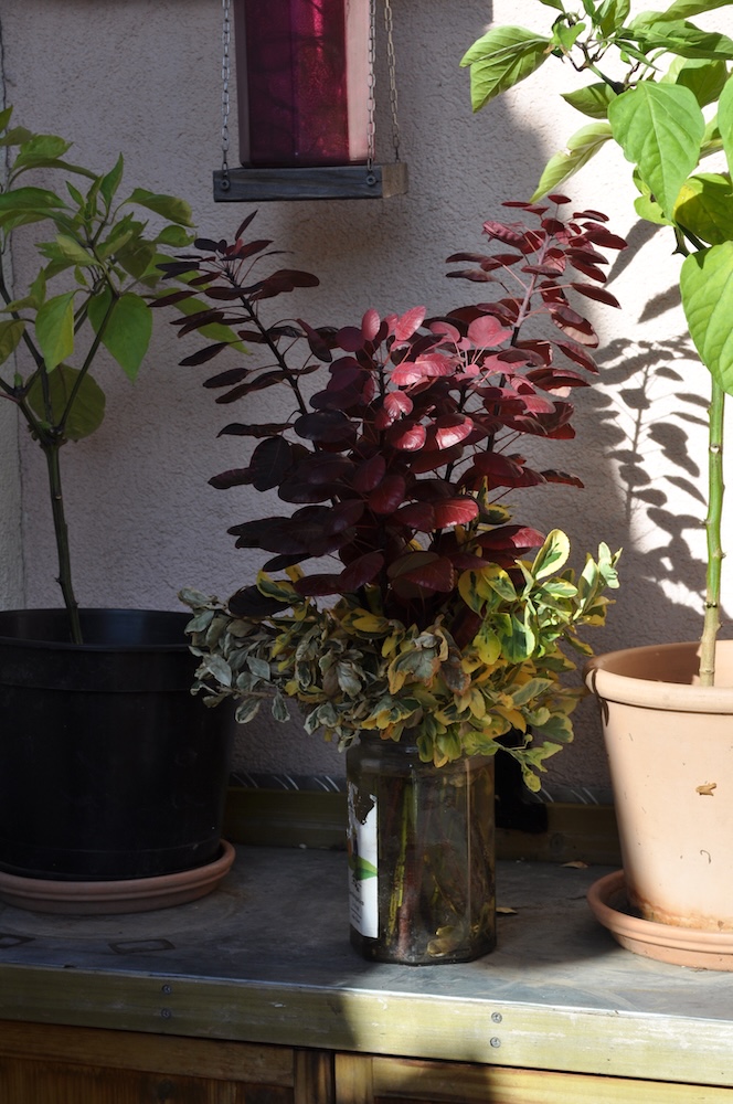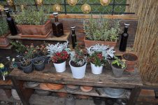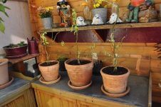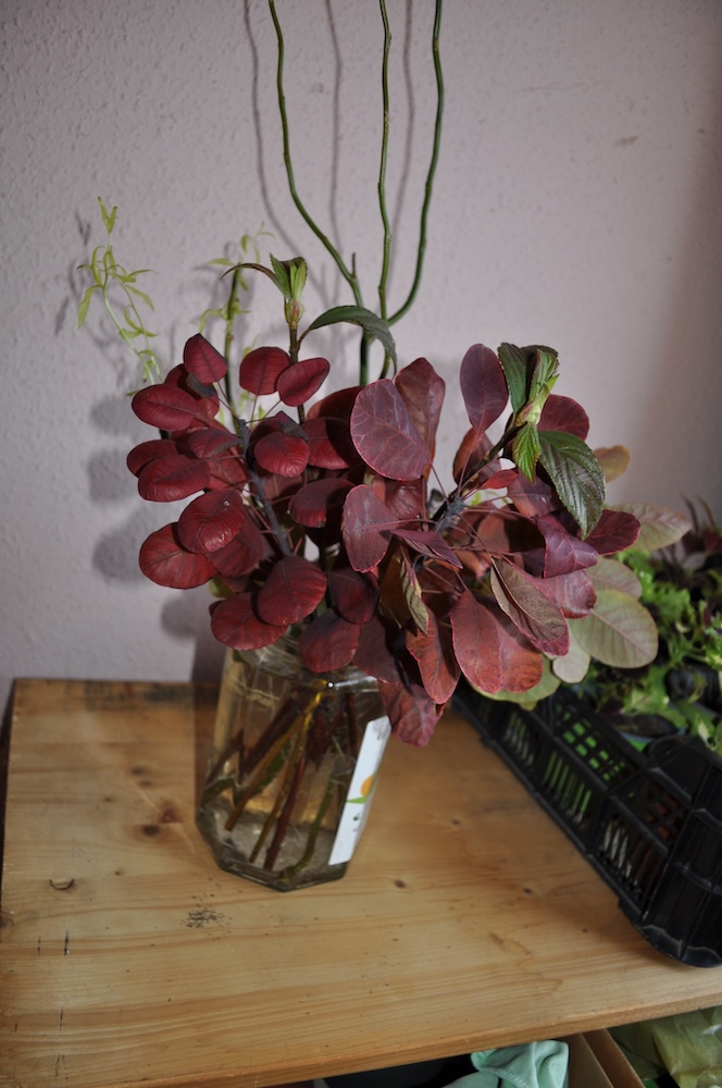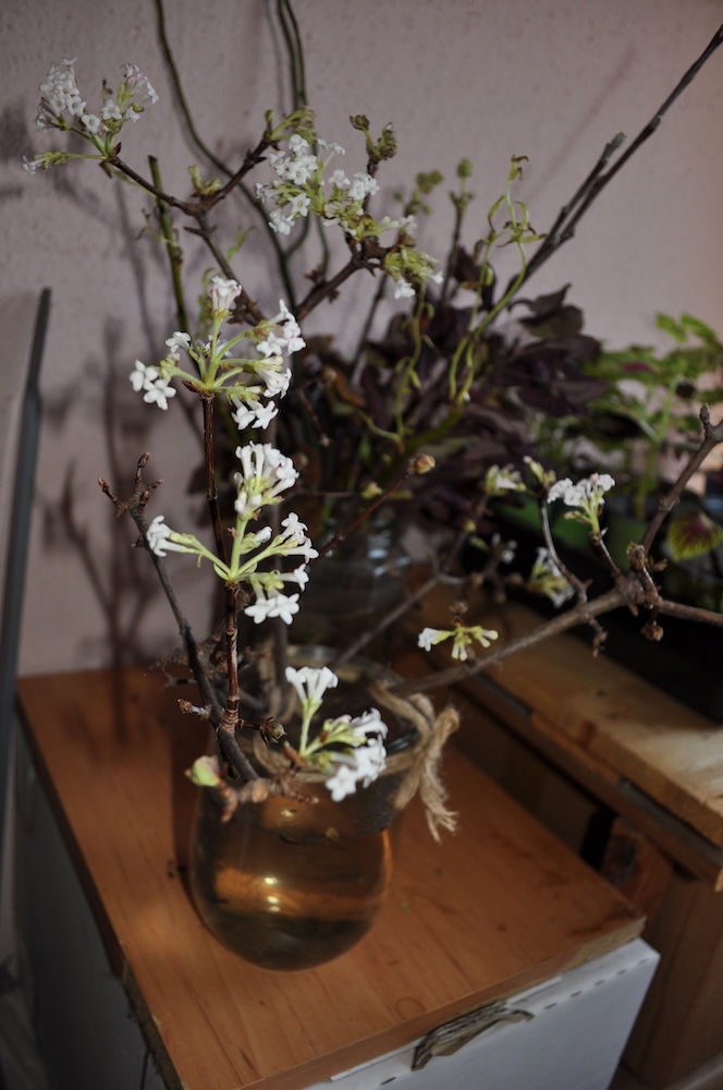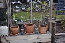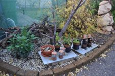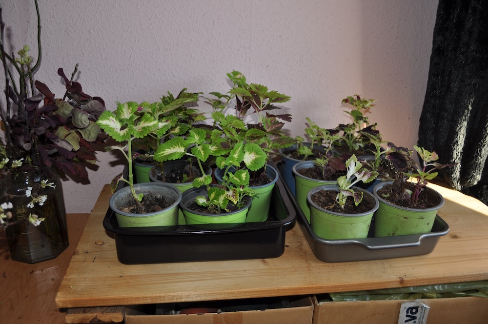 Der Großteil der Korkenzieherweide Ableger ist in Töpfe gewandert, die meisten Äste des Perückenstrauchs und Winterschneballs sind ebenfalls noch im Freien – einige im Haus bei den gut gedeihenden Buntnesseln. [Bild Nr. 2/06-2/11]
