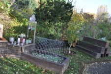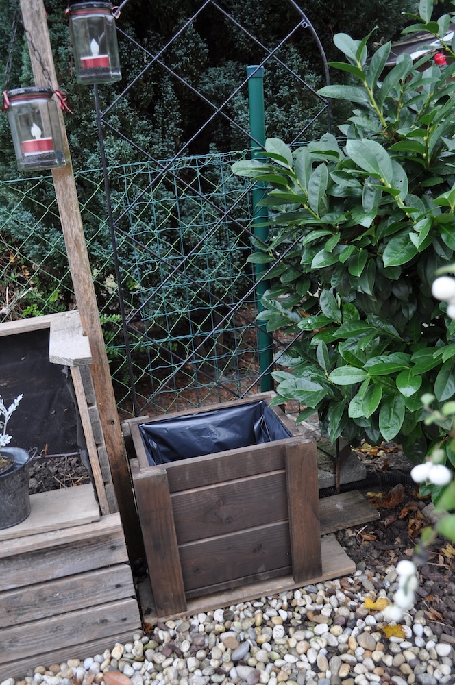 Beim Bottich neben dem langen Beet haben wir ebenfalls einen Strohmatte angebracht und anschließend etwas Erde für den neuen Bottich gesiebt, um den Strauch am Teich um zu pflanzen. [Bild Nr. 5/22-5/24]