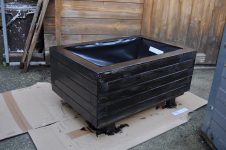 Das neue Pflanzgefäß konnten wir noch am Vortag streichen [Bild Nr. 5/01] bevor es dann frostig geworden ist, zumindest in der Nacht ist das Thermometer ins Minus gerutscht.