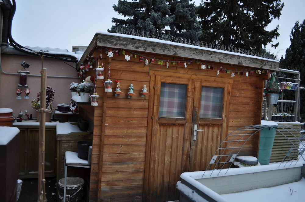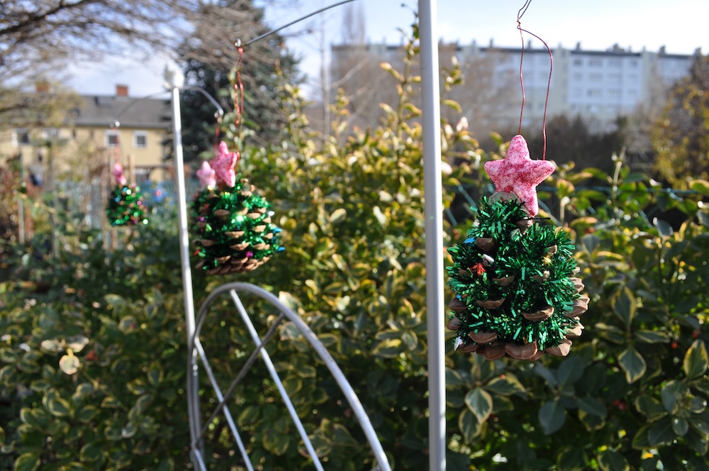 Wir haben zwischendurch noch etwas Weihnachtsdeko gebastelt. [Bild Nr. 6/10-6/13] Und einen sonnigen Tag für das Anbringen im Garten genutzt. [Bild Nr. 6/14-6/30]