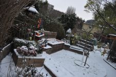 Nachdem auch der zweite Pflanzkübel geliefert wurde, haben wir jedoch bemerkt das die beiden nicht so recht miteinander harmonieren, also ist der „Neue“ zum Kirschlorbeer beim langen Beet übersiedelt – der noch auständige Behälter wird seinen Platz neben dem ersten Pflanzkübel finden. [Bild Nr. 3/13-3/17]