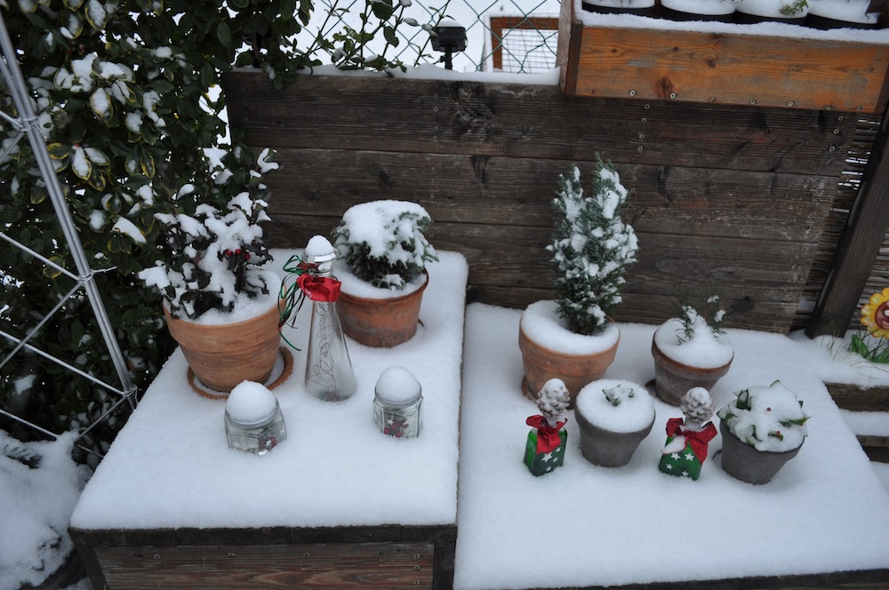 Dabei die frisch angebrachte Weihnachtsdeko unter gut 5 cm Schnee verdeckt. [Bild Nr. 7/14-7/21]